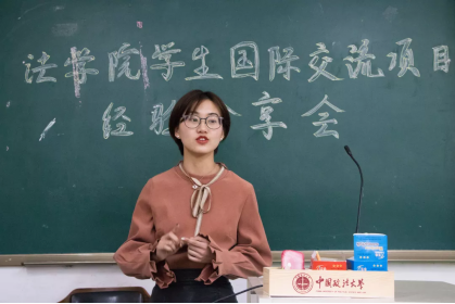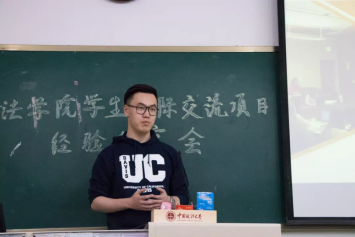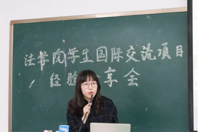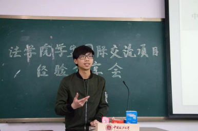 1701班的莫欣怡同学向在场同学介绍了“牛津大学奥利尔学院-剑桥大学莫德林学院暑期项目”的概况和自己在参加此项目时的经历和见闻。1603班的倪靖楠同学介绍了“台湾政治大学暑期人文学术研修项目”,分享了自己在台的学习和生活的所见、所闻和所感。1401 班的温颂恒同学介绍了自己在参加“‘2011 计划’法学实验班中外联合培养项目”时的学习和生活的经历。