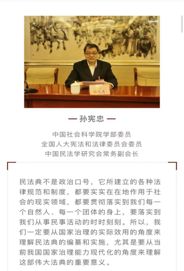 陈征教授表示,孙宪忠教授的讲座高屋建瓴,非常全面的分析了民法典与国家治理的关系。陈征教师谈到,关于宪法与民法的关系,其实始终被一些民法学者所误解。这个责任不在民法学,而在我们宪法学。追溯这一问题的根源,认为应该来源于本世纪初的齐玉玲案和之后若干年宪法学界激烈讨论的第三人效力。以及为什么很多民法学者认为宪法切入民法会威胁契约自由等公民自由,主要是民法层面主要将视角局限于两个或多个民事主体,而在宪法层面看到的不只是两个民事主体,还包括民事立法者本身,这是行使公权力的表现。此外,宪法还可能间接适用在民事领域,比如在司法机关适用民事法律的时候,应该在必要时进行合宪性解释或者以宪法为导向的解释,此时司法机关表面在适用民事法律,实际上背后蕴含着对宪法的适用。无论是在民事领域直接还是间接适用宪法,目前宪法学界都在积极讨论。非常期待民法学者今后能多关注宪法,让宪法和民法可以发挥良性的交互影响,为法治发展共同努力!