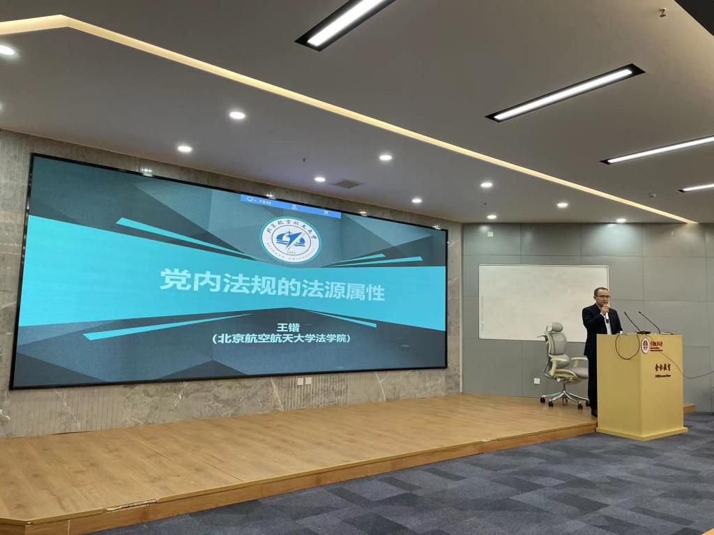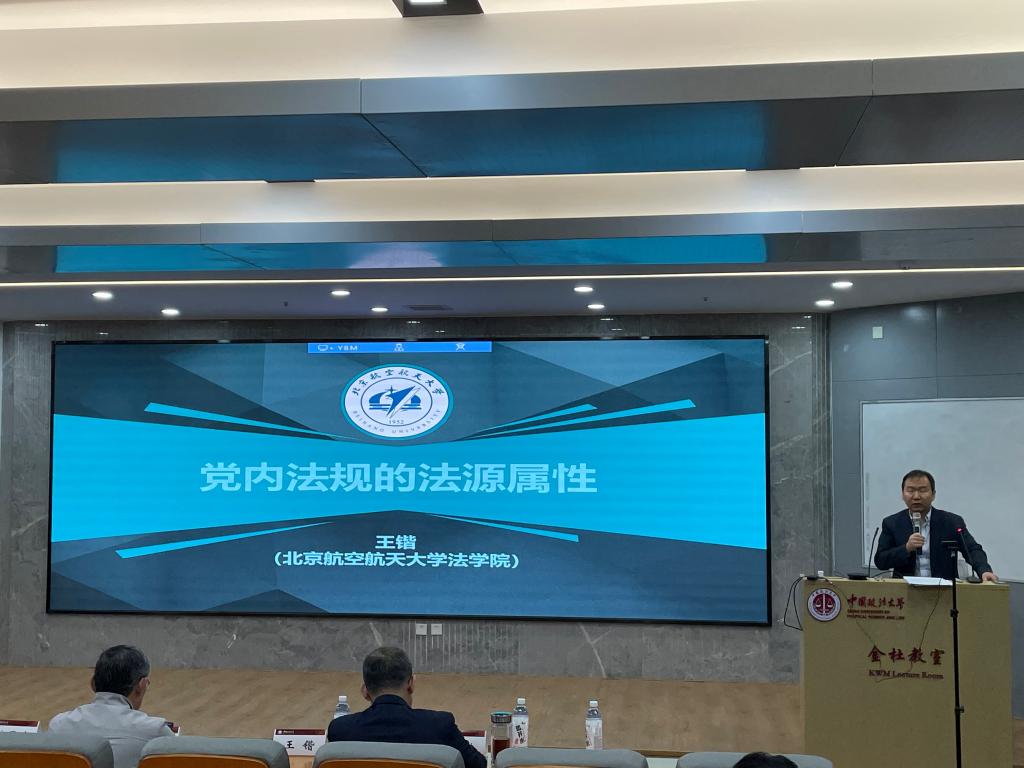 本次讲坛邀请了北京航空航天大学新葡萄官网amg王锴教授,以“党内法规的法源属性”为主题发表学术报告。讲座由党内法规研究所所长张劲副教授主持,新葡萄官网amg李树忠教授、姚国建教授、赵雪纲副教授、赵海全老师等多位老师参与了学术交流,还有近五十名名博士和硕士研究生参与了本次讲座。
