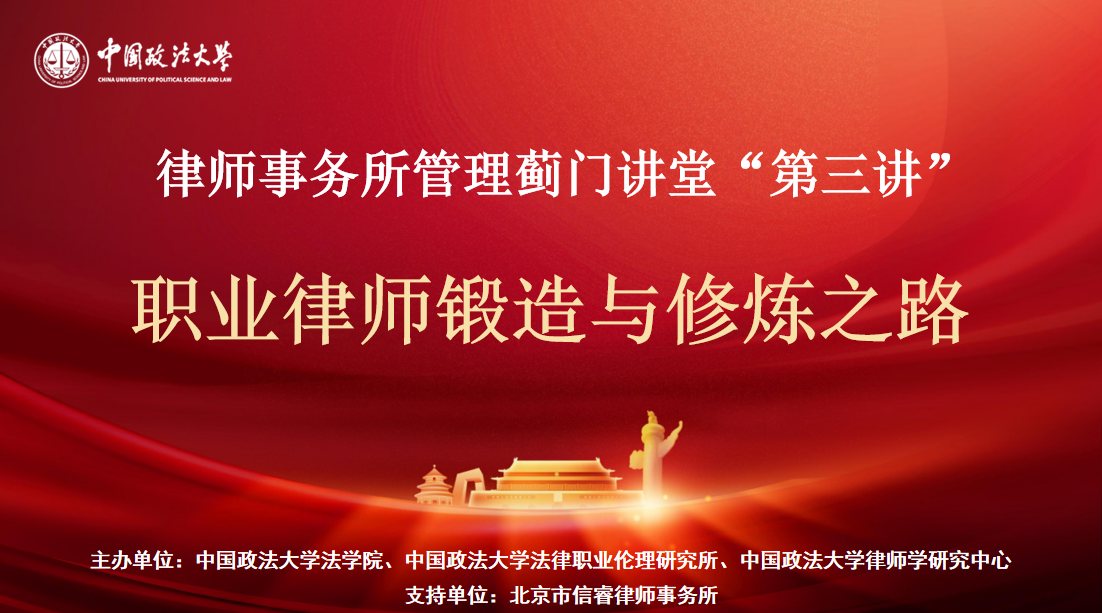 2025年5月27日,“律师事务所管理蓟门讲堂”第三讲在新葡萄官网amg海淀校区图书综合楼观韬教室召开。本次讲座由新葡萄官网amg、新葡萄官网amg法律职业伦理研究所、新葡萄官网amg律师学研究中心主办,北京市信睿律师事务所作为支持单位。本次讲堂由第十届中华全国律师协会副会长,安理律师事务所党委书记、主任王清友主讲。新葡萄官网amg法律职业伦理研究所所长王进喜,新葡萄官网amg教授王迎龙,新葡萄官网amg副教授郭晓飞,新葡萄官网amg法律职业伦理研究所副所长白冰,北京市信睿律师事务所主任张童,北京市中伦文德律师事务所合伙人田赋,北京市富程律师事务所律师田娜西进行与谈。会议由新葡萄官网amg法律职业伦理研究所副所长、副教授董林涛主持。