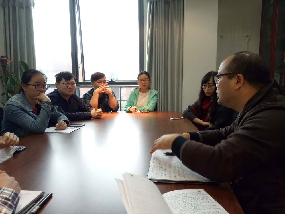 接下来,管老师向到会同学介绍了前几届实验班师兄师姐的毕业论文写作情况还有就业情况,可见在当前的就业压力下,危机和挑战是并存的,我们12级实验班不能放松警惕,应该尽早开始准备相关事宜。所以在这学期接下来的日子里,年级辅导员会根据大家的实习情况,开始组织大家进行就业培训、读书会等多种活动,因此各位班干部也要提高意识,起到带头模范作用,带动班级的同学参与到年级的活动中去,把大家的重心拉回到学习和提升自己就业能力的培养上。管老师也提醒12级实验班的同学也要自己开始行动,向自己的实习论文指导老师咨询论文写作的相关事宜,尽早开展论文的写作
