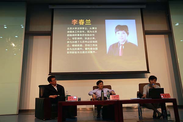 随后,李春兰律师结合自身诉讼代理经验对行政首长出庭应诉的问题发表了看法。李律师根据具体案例进行分析,认为首长出庭应诉对解决行政纠纷具有积极作用,社会关注度的提高使当事人的诉求能够得到更好的满足。李律师微言大义,精炼幽默的语言使讲座现场气氛活跃,同学们欢笑声阵阵。