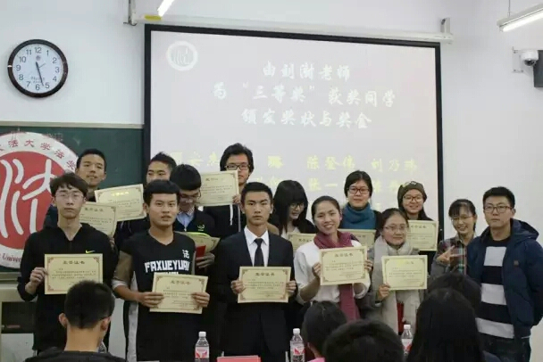 在全场对刘老师的讲话报以热烈的掌声后,大会进入了颁奖阶段。袁杉口头表扬了获得杰出奉献奖的同学,他们虽然没有取得成绩,但在集训期间的付出也是值得肯定的。高晗、赵家皞、芦金科、刘澍老师、杨婷婷老师分别向获得新葡萄官网amg运动会特殊奉献奖、新葡萄官网amg优秀教练员奖、全勤奖、三等奖、二等奖和一等奖的同学颁发奖状并合影留念。