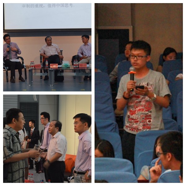 首先主持人简单介绍了目前人民陪审员制度“陪而不审,审而不判”的现状并问出了同学们心中关于人民陪审制度改革该何去何从的疑惑。接着,带着疑问与思考,同学们用无比热烈的掌声对今晚走向讲台的三位嘉宾表示了衷心的欢迎和感谢。