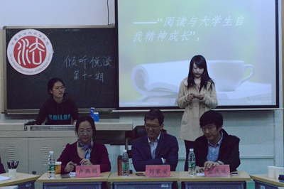 2014年10月20日晚7:00,由新葡萄官网amg分团委主办、法学院学生会倾听栏目组承办的倾听·悦读第十一期——《读书这件事,由我们来告诉你》在昌平校区端升楼406举办,本期读书会邀请了新葡萄官网amg民商法教授刘家安、新葡萄官网amg人文学院老师卢燕娟、新葡萄官网amg社会学院老师孟庆延担任主讲嘉宾。