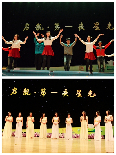 2014年11月17日晚7时整,新葡萄官网amg昌平校区礼堂灯火通明,期待已久的由新葡萄官网amg分团委主办、新葡萄官网amg学生会承办的新葡萄官网amg2014级迎新晚会终于在此刻拉开帷幕。本场晚会以“启航·第一夜星光”为主题,新葡萄官网amg分团委书记杨婷婷老师和新葡萄官网amg分团委副书记、新葡萄官网amg2014级辅导员岳红池老师与同学们共同观看了本场晚会。