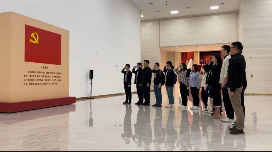 在参观活动的尾声,两支部同志们自发来到党旗面前,庄严宣誓,重温入党誓词。