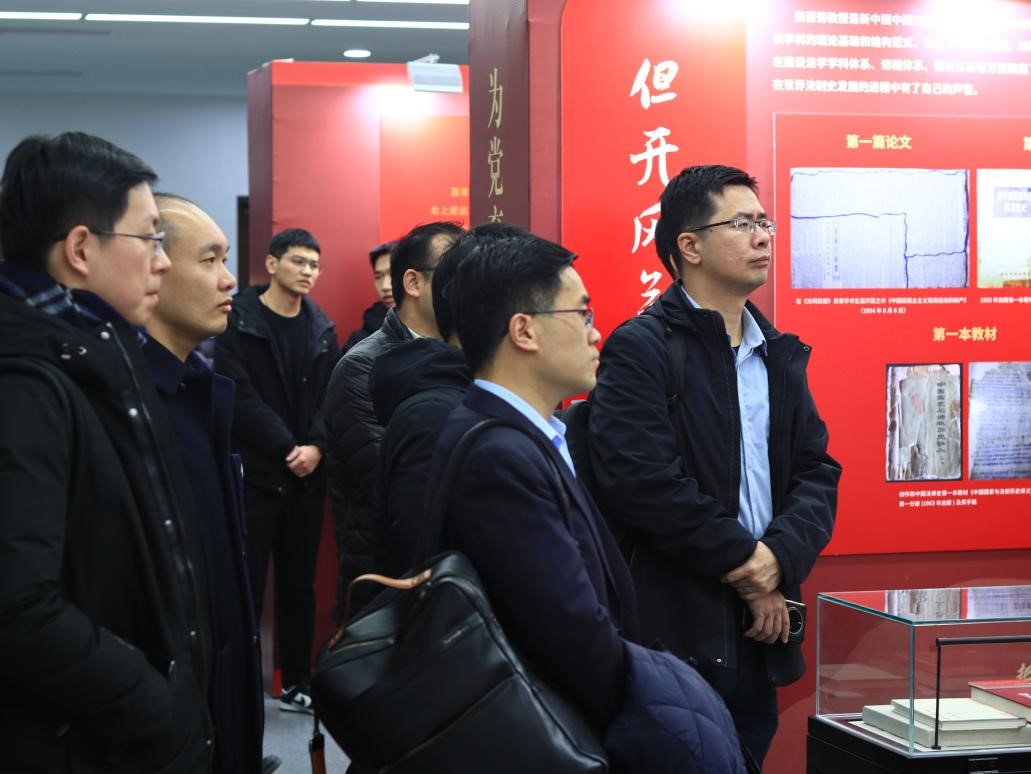 讨论会前,与会人员共同参观“致敬人民教育家:张晋藩”特展,法律史学研究院张京凯老师为大家作精彩讲解。与会师生跟随张京凯老师的讲解,全面系统地了解了张晋藩先生的治学经历、教学生涯,以及张晋藩先生为我国教育事业做出的卓越贡献。与会师生深刻体悟了张晋藩先生对学术的热切追求、对教育的伟大奉献以及对国家的深切热爱。