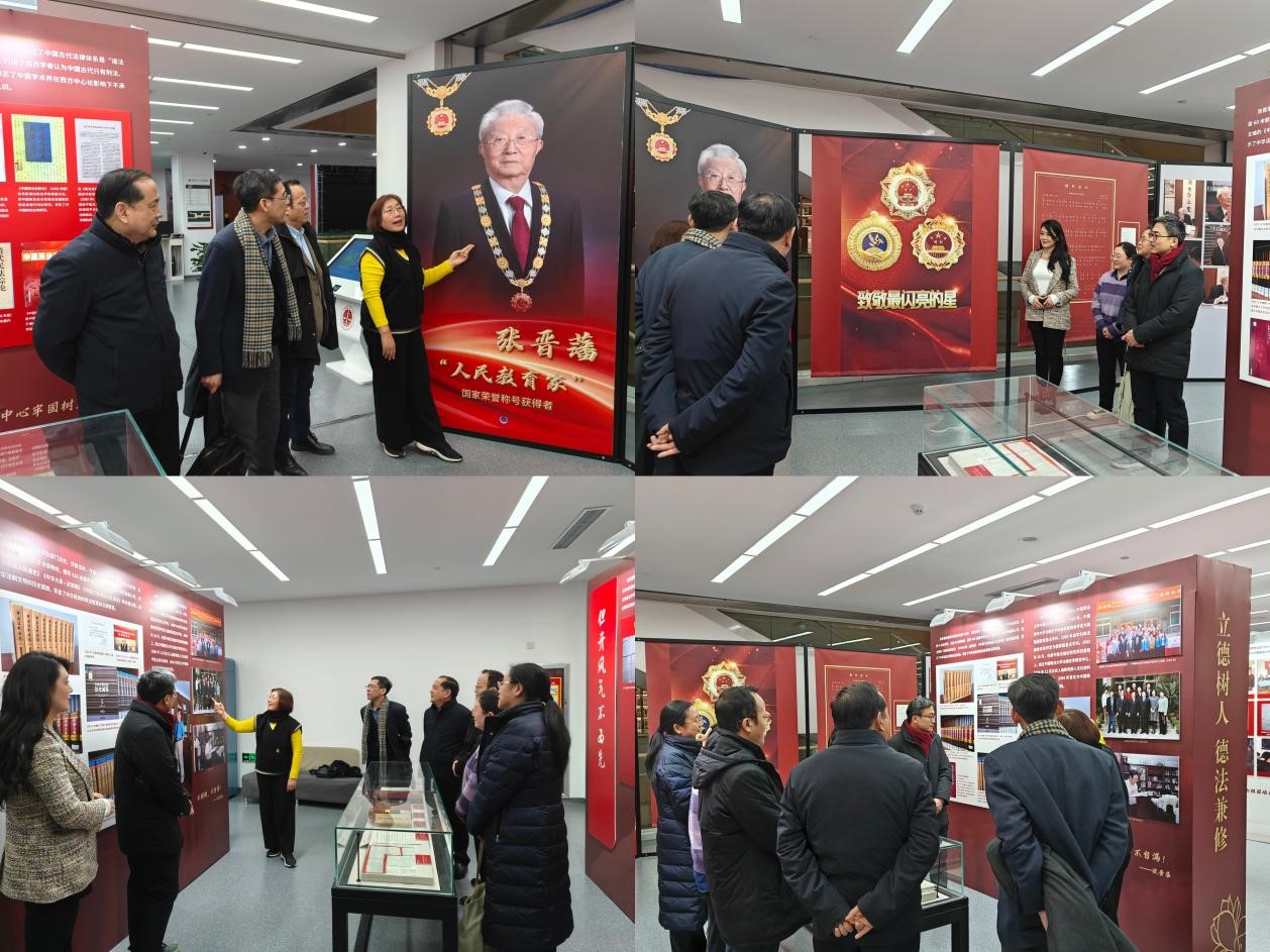 随后,师生们到图书馆二层参观“人民教育家张晋藩先生”专题展览,展览包括“名著外译传世界、兴资助教启新路、摩顶放踵育新人、激活传统促法治、但开风气不为先、躬耕法史鉴古今”六个部分,通过珍贵的历史照片、手稿、徽章以及详实的文字介绍,全面回顾了张晋藩先生波澜壮阔的学术生涯与对教育事业的深情奉献。最后,王夏昊老师对本次活动进行总结。通过深入学习与实践增强了教师们的责任感与使命感,老师们将以此为契机传承人民教育家精神,为培养法治人才、服务社会贡献力量。