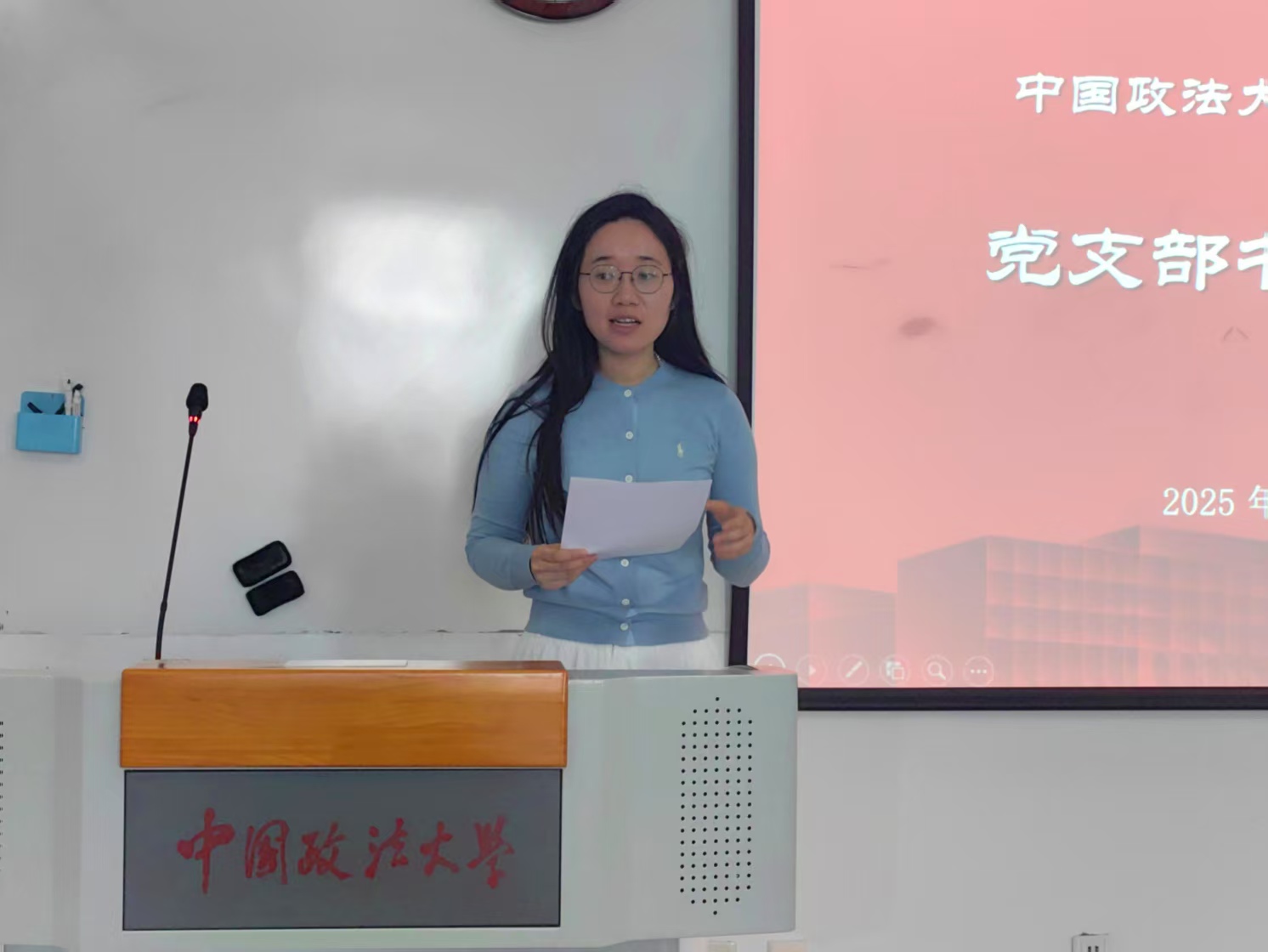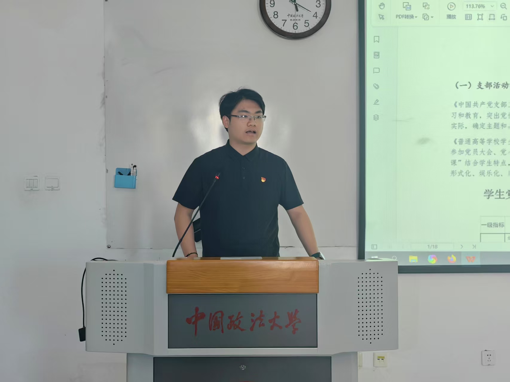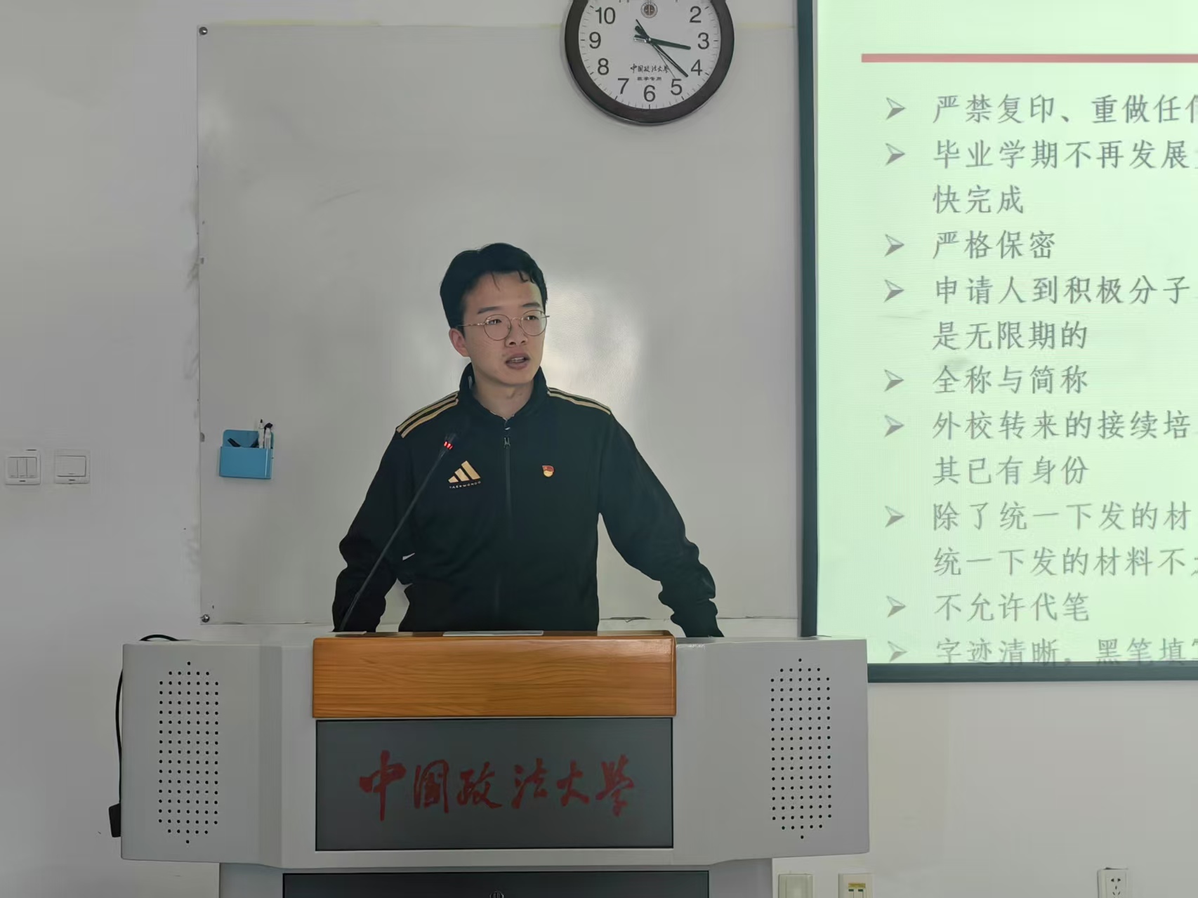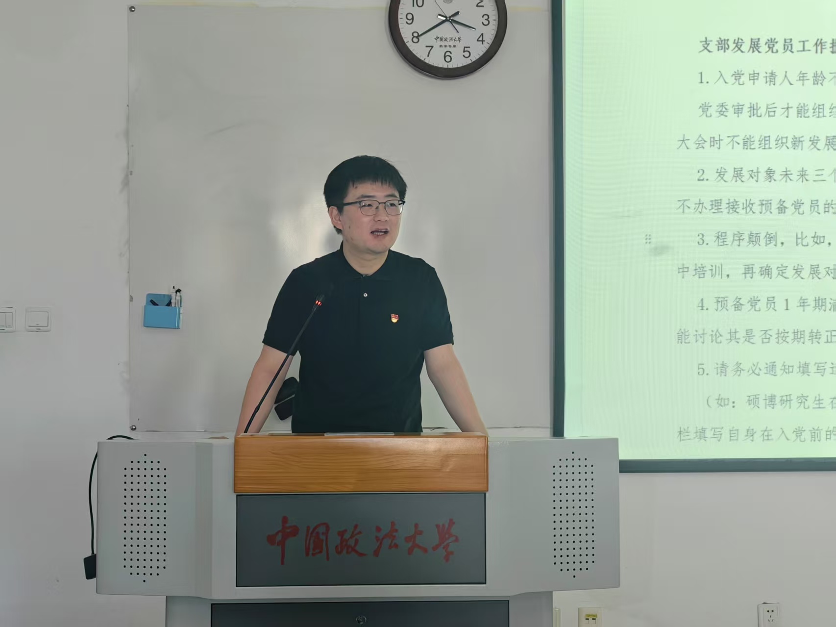 活动第三项,2022法学实验班年级组织员万博洋2023级硕博生年级组织员李鸿英讲解了党员发展工作流程的重点难点。万博洋梳理了从递交入党申请书到转正各阶段的时间轴和关键环节,包括党组织派人谈话、确定积极分子、发展对象、接收预备党员及转正等时间点,以及各阶段材料填写的规范要求。李鸿英就党员发展过程中的一些重点和易错点进行提示,包括材料易错、时间逻辑易错、毕业年级归档确认材料是否齐全等细节方面的问题。