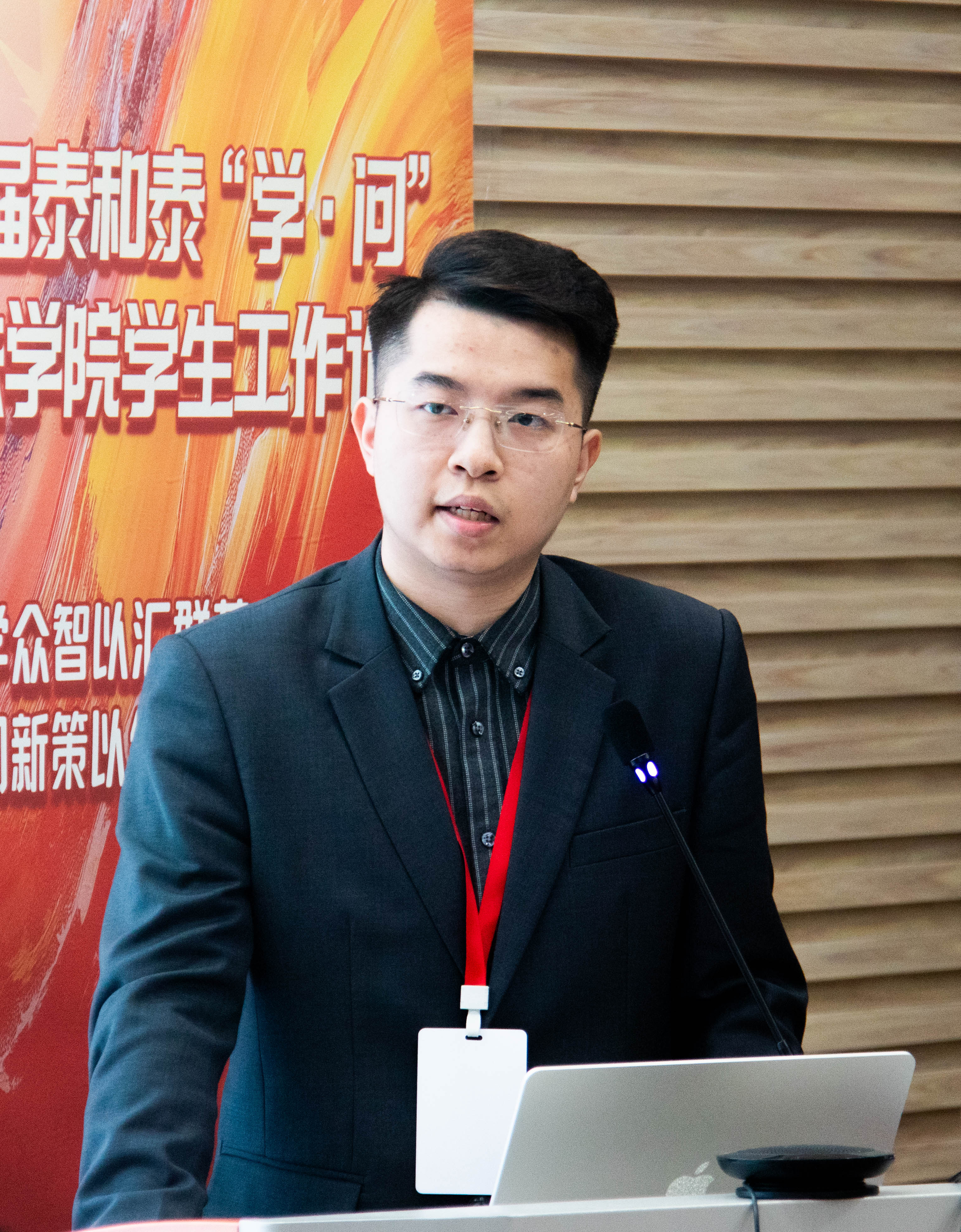 首先由新葡萄官网amg优秀学生干部代表邓熙可致引言,分享他在学生工作方面的经验,围绕学生干部的成长,重点在于自我培养和自我教育,邓师兄分享了重实践、重品德、重学习这三个大家可以尝试努力的方向,并祝愿各位每日精进,修己有成。