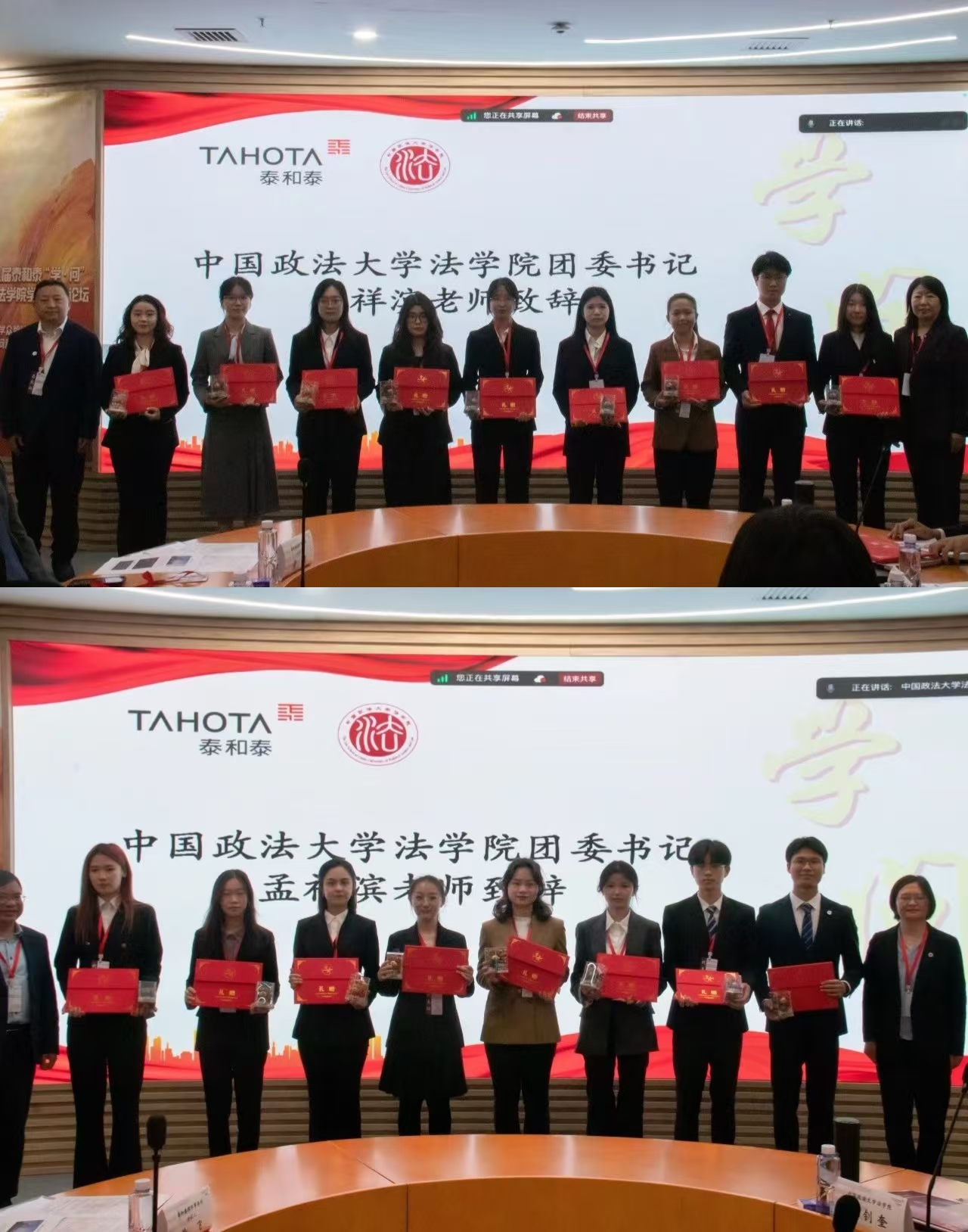 随着各位嘉宾致辞结束,开幕式进入礼赠环节。为表达对各高校代表的诚挚欢迎,并纪念我们共同的使命与情谊,新葡萄官网amg与泰和泰律师事务所为代表们准备了心意礼赠,由新葡萄官网amg嘉宾代表和泰和泰律师事务所合伙人王淑焕律师对参会高校进行礼赠并合影留念。