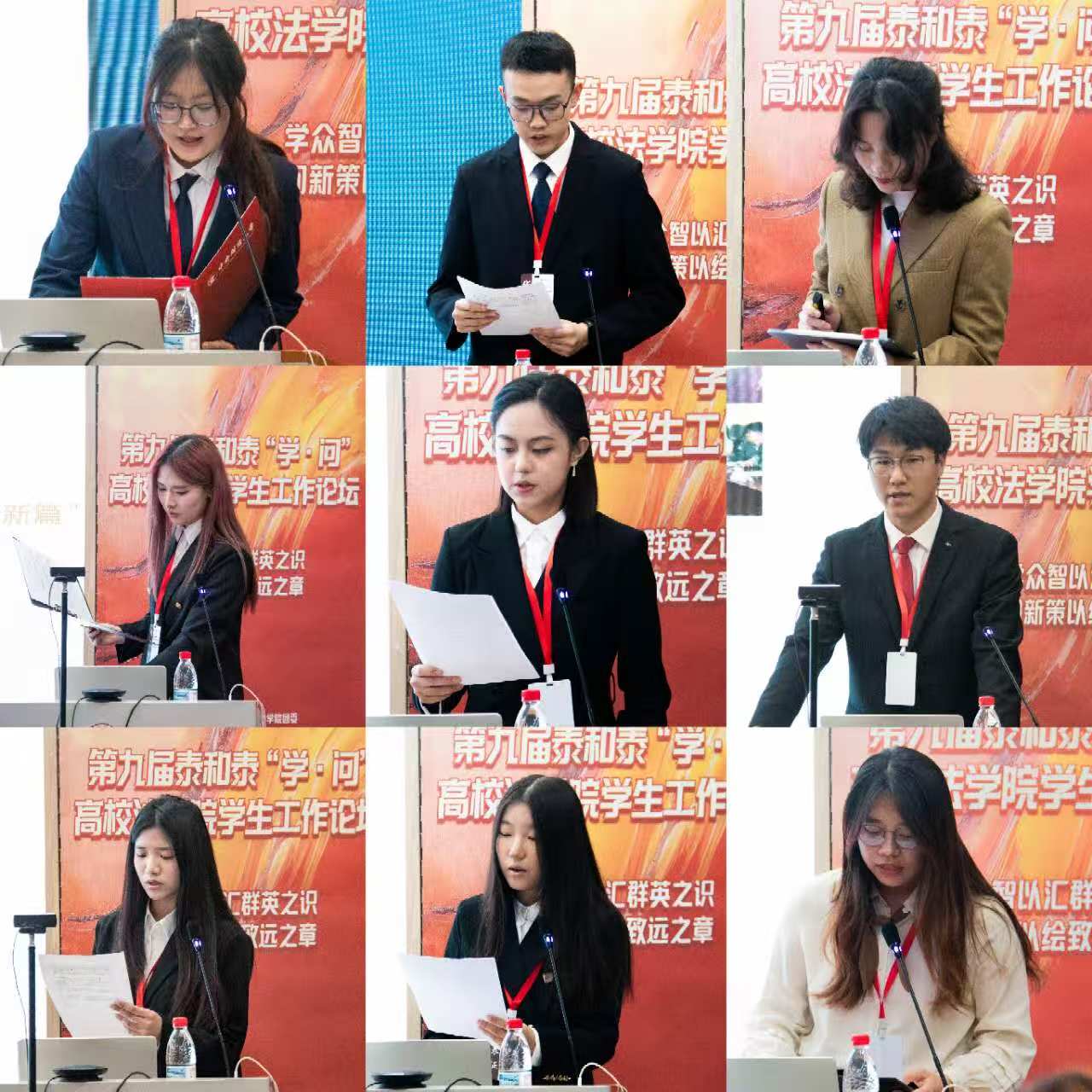 新葡萄官网amg党委书记王文英、泰和泰律师事务所合伙人王淑焕律师、刘汝忠律师、黄飞律师、新葡萄官网amg团委书记孟祥滨、新葡萄官网amg优秀学生干部代表邓熙可应邀与会。本次论坛采取线上线下相结合的方式,来自新葡萄官网amg、北京工商大学、北京航空航天大学、北京交通大学、北京科技大学、北京理工大学、北京外国语大学、对外经济贸易大学、吉林大学、南开大学、清华大学、首都经济贸易大学、四川大学、武汉大学、中国人民大学、中国人民公安大学、中央财经大学、中央民族大学等十八所高校的学生代表出席线下会议,来自天津大学、南京大学、浙江大学、华东政法大学、西南政法大学、中山大学、中南财经政法大学等七所高校的学生代表齐聚线上平台。