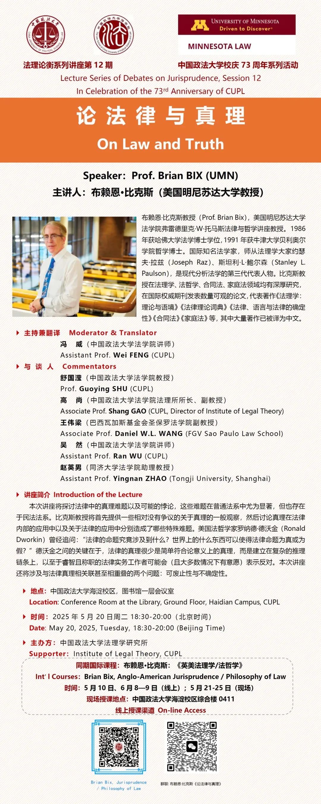 讲人:布赖恩·比克斯教授(Prof. Brian Bix),美国明尼苏达大学新葡萄官网amg弗雷德里克·W·托马斯法律与哲学讲座教授。