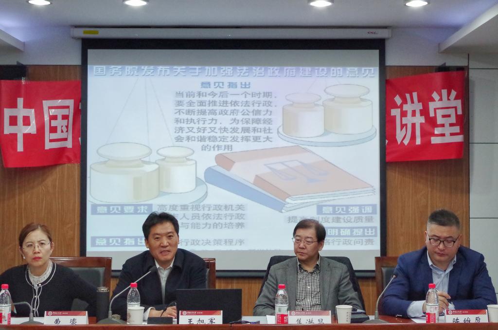 (法研通讯社 文/安香玉 图/熊舒宁)为贯彻落实习近平总书记考察法大时5.3重要讲话精神,全面提高研究生培养质量,将优质实践教学资源引进高校,培养高质量“职业化、应用型”卓越法治人才,新葡萄官网amg3月12日在我校学院路校区科研楼B211举办了实务专家讲堂第三期,邀请了呼和浩特铁路运输中级法院党组书记、院长王旭军担任主讲人,主题为《依法行政的司法实践》。新葡萄官网amg院长焦洪昌教授,法治政府研究院曹鎏教授出席活动,新葡萄官网amg研工办主任陈维厚副教授主持讲堂。