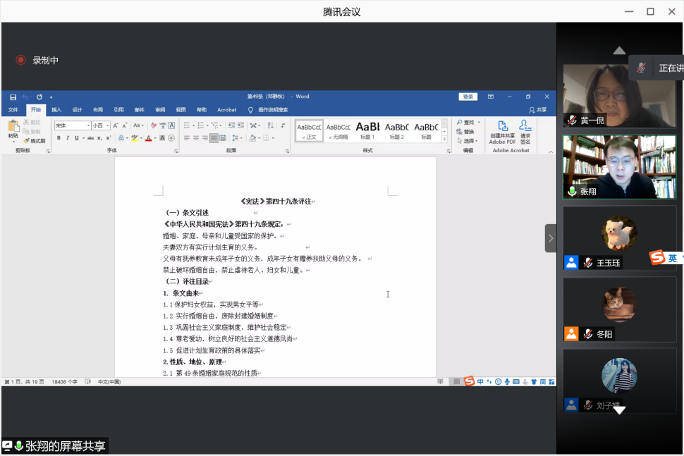 张翔教授介绍了自身开展的法律评注工作情况,他从2017年决定撰写《宪法》法律评注,到目前为止已经完成《宪法》半数以上条文的评注。张翔教授提出,撰写法律评注过程中应当贯彻穷尽原则,关注评注条文最有特色的内容。最后,张翔教授表示,尽管中国法律评注短期内较难达到德国法律评注的水准,但当前的中国法律评注工作能为未来的完善打下良好基础。