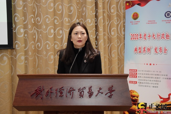 据悉,最高人民检察院第七检察厅(行政检察厅)与中国法学会行政法学研究会共同组织“2020年度十大行政检察典型案例”评选活动,经公开遴选、专家初评、公众投票、专家终评,从参选案例中评选“2020年度十大行政检察典型案例”,并于2021年1月28日在对外经济贸易大学发布。我院罗智敏教授和赵宏教授参加评选工作,并在发布会上对“王某等54人与山东某镇政府征收补偿安置行政裁判执行检察监督案”和“上海市黄浦区检察院就王某某与区房管局房屋补偿安置纠纷制发检察建议案”作精彩点评。该发布会由“正义网”全程直播报道。