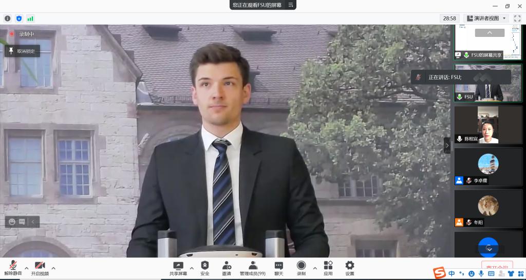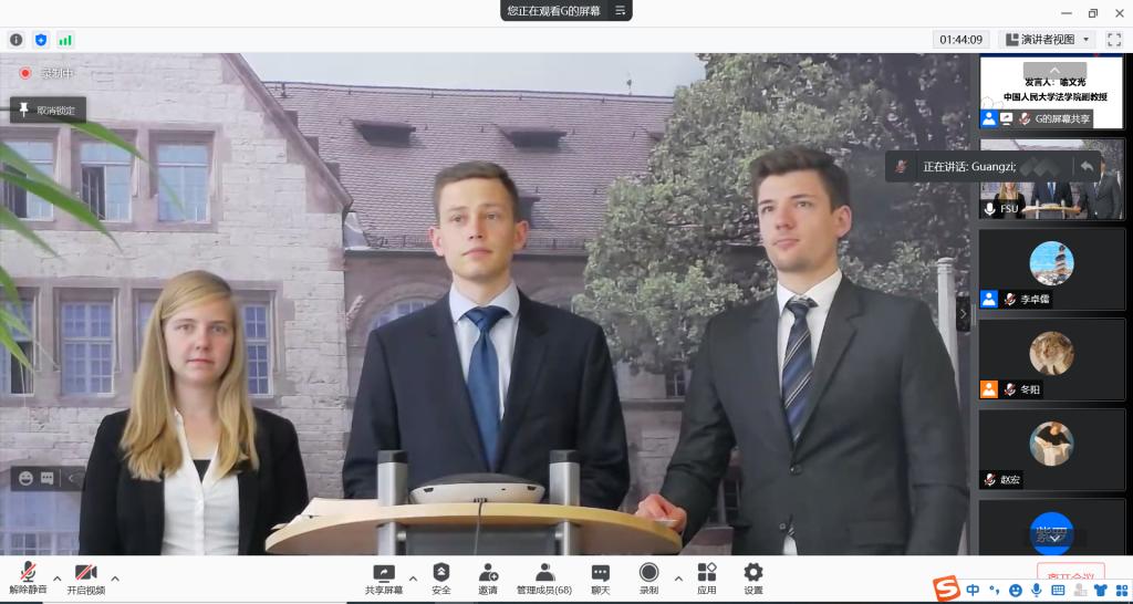 2021年9月14日晚,新葡萄官网amg行政法研究所举办“行政法评注&鉴定工作坊”第三期。本次讲座主题为“德国建设法鉴定式案例分析”,通过腾讯会议方式进行,由行政法研究所张冬阳博士主持,邀请德国埃尔富特应用科学大学教师Tobias Birk、德国耶拿大学新葡萄官网amg科研助理Janine Delcuvé、德国耶拿大学新葡萄官网amg科研助理Lennard Lehmann共同担任本次讲座主讲人,耶拿大学新葡萄官网amg博士研究生陈相宜担任翻译,中国人民大学新葡萄官网amg喻文光副教授、新葡萄官网amg赵宏教授和中国社会科学院法学研究所贾茵助理研究员作为与谈嘉宾参与本次讲座。百余名来自国内外高校的师生聆听了本次讲座。