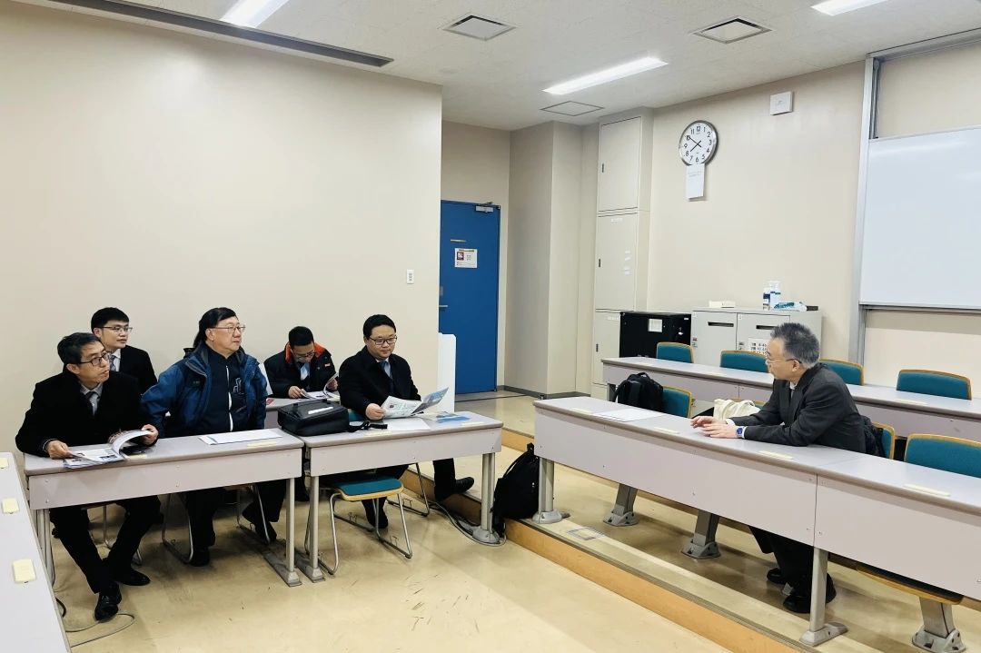 So as to further understand the cultivation of rule of law talents in Japan, the delegation of the Institute of Sports Law, led by Professor Wang Yunhai, visited the library and the mock courtroom of the Faculty of Law of Hitotsubashi University. In the classroom of Hitotsubashi University School of Law, Professor Wang Yunhai introduced to the delegation that since the implementation of the reform of legal education in Japan in 2004, the enrolment of master's degree and doctoral degree students of Hitotsubashi University School of Law has undergone a significant change, mainly focusing on the enrolment and cultivation of overseas master's degree and doctoral degree students, of which master's degree and doctoral degree students from China take up a large proportion. The enrolment of the Law School of Hitotsubashi University Law School is one of the highest in Japan, which is largely attributed to the fact that the students trained by the Law School of Hitotsubashi University Law School have always been among the top students in Japan in terms of the passing rate of the judicial examination, which has led to a shift in the human resources cultivation responsibilities of the law teachers. In addition, the delegation also asked Professor Wang Yunhai about the model of the preparatory examination for the judicial examination, which is one of the ‘dual-track system’, and in particular, about the fact that the University of Tokyo still retains the traditional model of legal education.