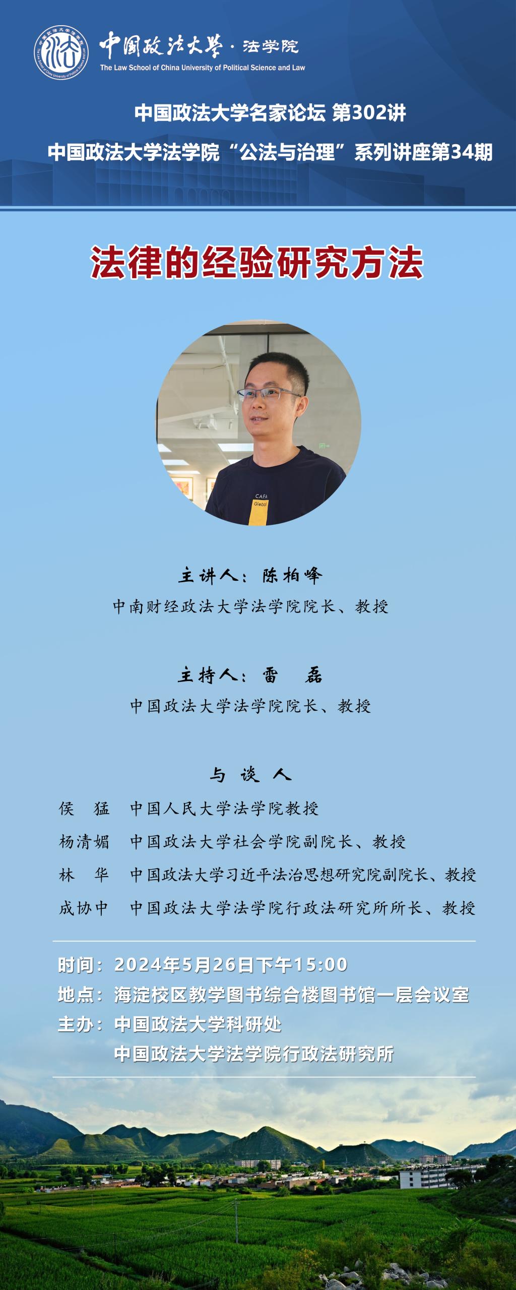 No. 302 of China University of Political Science and Law Distinguished Lecturer Forum and Lecture No. 34 of ‘Public Law and Governance’ Series:Empirical research methods in law
