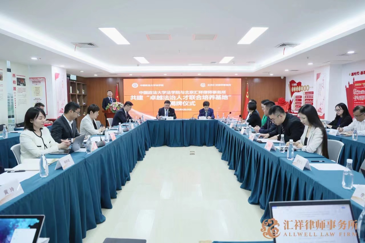 2023年4月28日,新葡萄官网amg与汇祥律师事务所共建“卓越法治人才联合培养基地”签约暨揭牌仪式在汇祥律所北京厅举行。新葡萄官网amg党委书记刘大炜,律师学研究中心主任王进喜,新葡萄官网amg党委副书记王文英,新葡萄官网amg教学科研办公室主任杜智雯,汇祥律所创始合伙人、主任、管委会主任李超峰博士,创始合伙人、党总支书记焦景收,执行主任栗彬,监事会副主任、刑委会主任王亚伟,管委会委员、汇祥律师研究院执行院长谢涌,国际合作与交流工作委员会主任,汇祥悉尼分所负责人张玲玲,青年律师工作委员会主任乔木,团支部书记王松洋,招投标事务管理工作委员会副主任李文剑及30余名律师出席揭牌仪式。