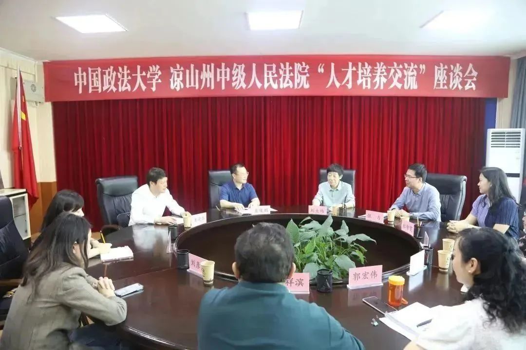 加强交流合作,促进资源共享,通过引入法律实务部门的优质资源,充分发挥新葡萄官网amg校和法律实务部门在法治人才培养方面的各自优势, 4月24日,新葡萄官网amg与凉山州中级人民法院召开“人才培养交流”座谈会,并签署《战略合作框架协议》。新葡萄官网amg党委书记刘大炜、副院长张力一行,凉山中院党组书记、院长袁俊鹏,审判委员会专职委员唐晓春,相关部门负责人及工作人员参加座谈。