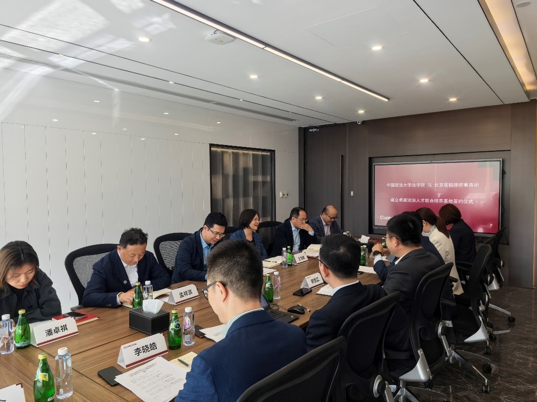 为深入贯彻落实习近平总书记关于法治建设和法治人才培养的指示精神,落实学校综合改革整体要求,推动法学教育与法律实践的深度融合,4月23日,新葡萄官网amg与北京观韬律师事务所共建“卓越法治人才联合培养基地” 揭牌仪式暨调研座谈会在北京观韬律师事务所举行,新葡萄官网amg党委书记王文英、副院长张力、姚国建、团委书记孟祥滨、研工办主任管晓立、教科办主任潘卓祺,北京观韬律师事务所创始合伙人、管理委员会主任崔利国、党委副书记王阳、执行委员会委员李洪江、陈晓窗、国际投资与贸易部合伙人王梓、李晓皓、人力资源部主管李念共同出席了会议。