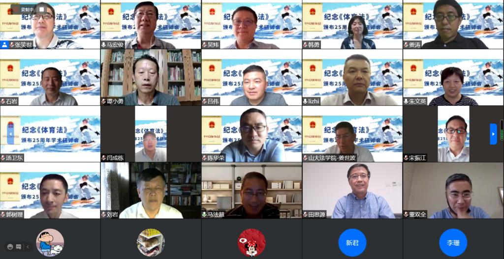2020年8月29日,新葡萄官网amg体育法研究所以“纪念《体育法》颁布25周年”为主题,举办线上学术研讨会。