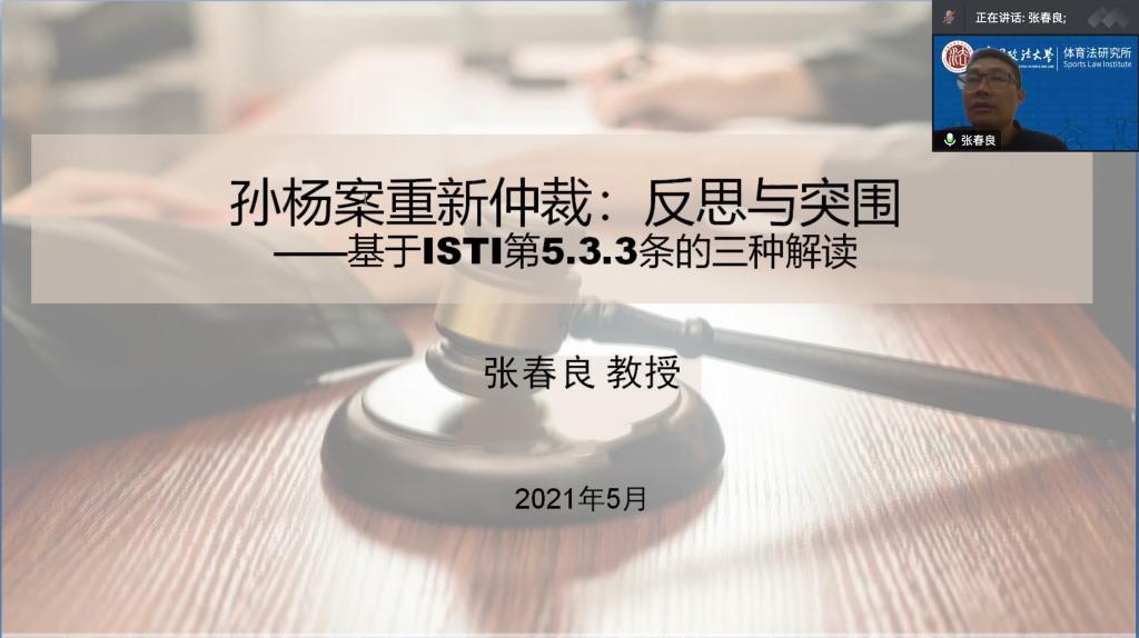 2021年5月24日晚,新葡萄官网amg体育法治研究基地、体育法研究所主办的“体育法治与健康中国”论坛第25期以线上会议的形式举行。本期论坛主题为“孙杨案重新仲裁:反思与突围”,主讲专家为西南政法大学博士生导师张春良教授。本期论坛由亲历孙杨国际体育仲裁案的新葡萄官网amg老师罗小霜博士主持,来自全国各地的体育法专家学者、体育法律师库入库律师以及新葡萄官网amg、西南政法大学等高校硕士博士研究生等90多人参加。