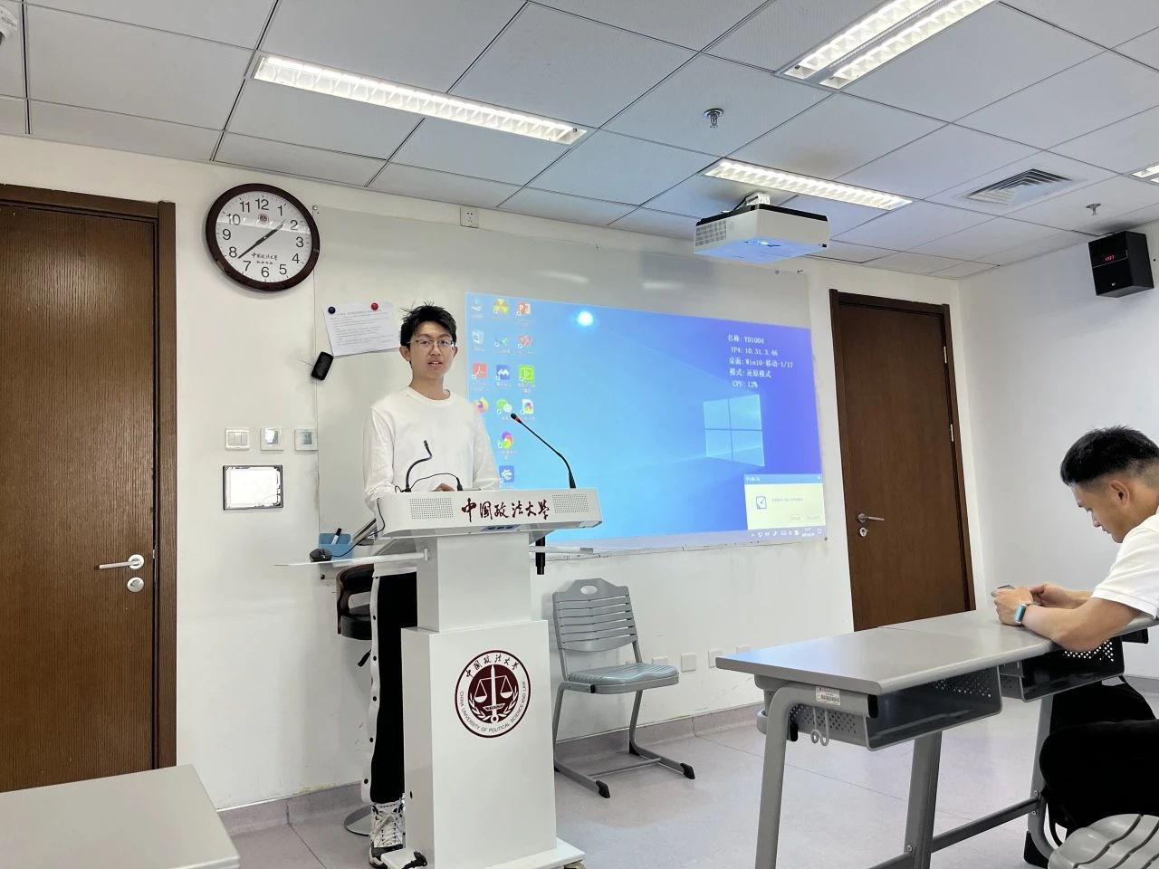 博士研究生王子晟结合自身参与课题研究的经验,深入分析了对学习习近平法治思想的深刻体会,以及如何在日常学习中将其融入到对各类法律问题的思考与分析中,为同学们提供了宝贵的学习思路。紧接着,陈建安从课程学习、实习实践、思想成长等多个方面,详细介绍了自己过去一年的学习情况与收获。他讲述了在课堂上如何通过系统学习专业知识,逐步构建起扎实的法学理论框架;在实习实践中,如何将所学知识运用到实际案例中,锻炼自己的实践能力。王硕则从自己在反兴奋剂中心实习的视角出发,生动地介绍了实习期间的所见所闻,并由此引申出对体育法相关问题的深入学习感悟,引发了在场师生对相关问题的进一步思考。赵安琪从课题参与、志愿服务、文献检索、名著阅读等多个方面,全面介绍了自己近期的学习情况。此外,她还结合当前关税战、贸易战等热点新闻事件,展示了自己运用法学知识进行分析和思考的能力。林南旭同学将个人学习成长经历与法大在法学教育领域的蓬勃发展历程紧密相连,深情回顾了自己在法大的学习历程。他表达了自己将以法学知识为武器,积极投身法治中国建设,为推动我国法学事业的发展贡献自己的一份力量的坚定目标。其他参会博士研究生、硕士研究生分别汇报了自己的学习情况。
