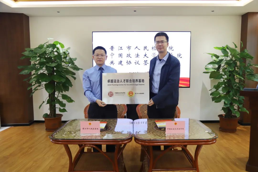 会上,晋江市检察院党组成员、政治部主任姚婉萍宣读《新葡萄官网amg与晋江市人民检察院建立卓越法治人才联合培养基地协议书》内容。新葡萄官网amg副院长张力与晋江市检察院党组副书记、副检察长王加贺共同签署《新葡萄官网amg与晋江市人民检察院建立卓越法治人才联合培养基地协议书》。张力副院长向晋江市检察院授“卓越法治人才联合培养基地”牌。