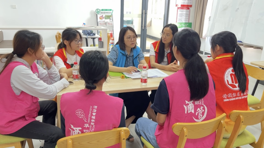2023年8月21日早上8点10分,酒店管理学院“荔”争上游先锋志愿者队全体成员于创新楼集合,共同前往石滩社工站豪园分站(豪园生活会馆4楼会议室)开展第八期“三下乡”社...